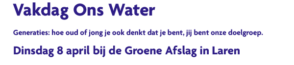 De aanmelding voor de Vakdag Ons Water is gesloten.
